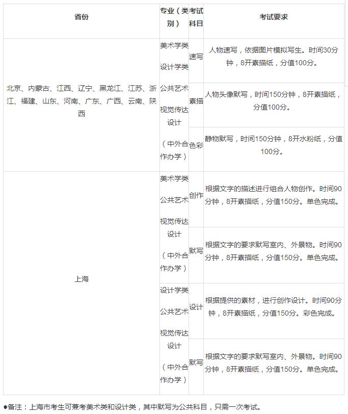 ●备注:上海市考生可兼考美术类和设计类,其中默写为公共科目,只需一次考试。