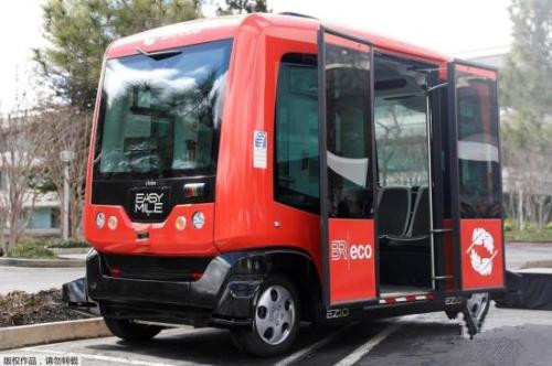 一辆无人驾驶公交车在美国加州毕晓普兰奇进行测试