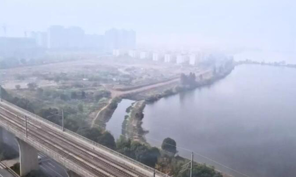 2月20日,雾气蒙蒙中,庙山地块全景。