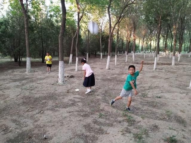 在树林里,孩子们跑啊,跳啊,飞机在丛林中穿梭……