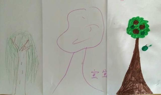 这就是从头到尾画画来不及叠飞机的小童星暖暖,她画的一棵树。心理画外音是表达什么呢?