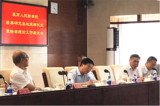 会上一同被授予最高检检察研究基地的还有:中国人民大学、北京师范大学、浙江大学、山东大学、东南大学、天津大学、中国政法大学、郑州大学、西南政法大学、西北政法大学、华东政法大学、中南财经政法大学、湘潭大学、河南财经政法大学等14所高校和法治前海研究基地。