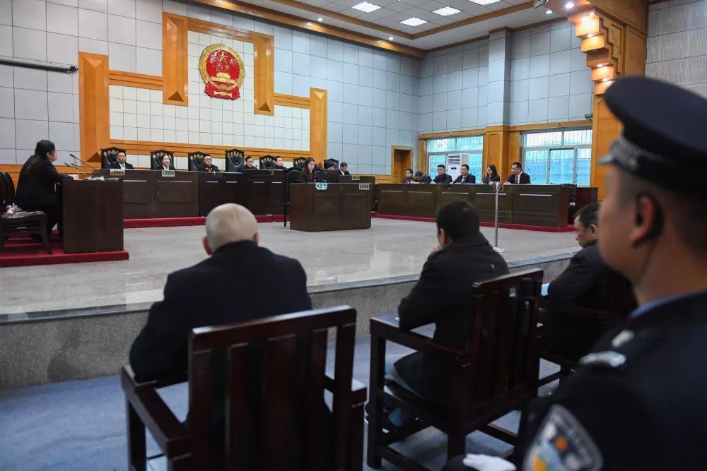 洞庭湖“湖霸”夏顺安黑社会性质组织案一审宣判,“黑老大”八罪并罚获刑25年。这是在湖南省益阳市中级人民法院拍摄的夏顺安黑社会性质组织案一审公开宣判现场(11月25日摄)。新华社记者摄