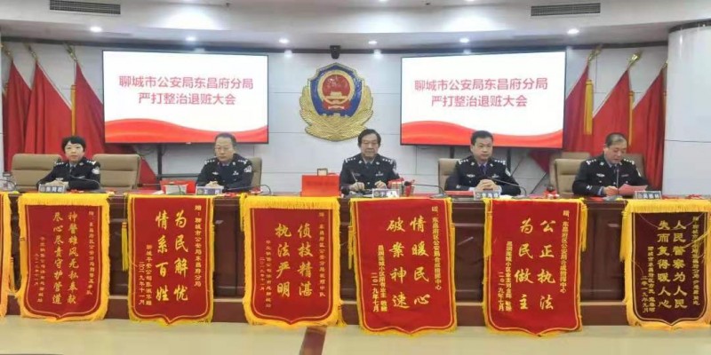 人民日报《人民周刊》聊城12月8日电 (记者任合一 通讯员刘玉珠)为震慑犯罪,鼓舞群众,进一步推动严打整治斗争的深入开展,12月8日,东昌府公安分局在分局三楼会议室隆重举行严打整治退赃大会。区政府党组成员、分局党委书记、局长于继谔,政委李海歌、副局长王民、吴振林出席会议,新闻媒体记者及部分群众代表参加会议。