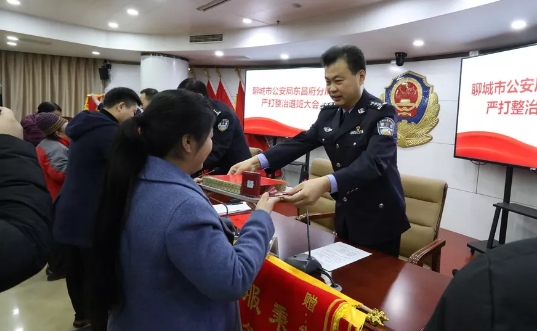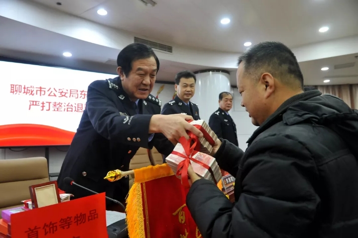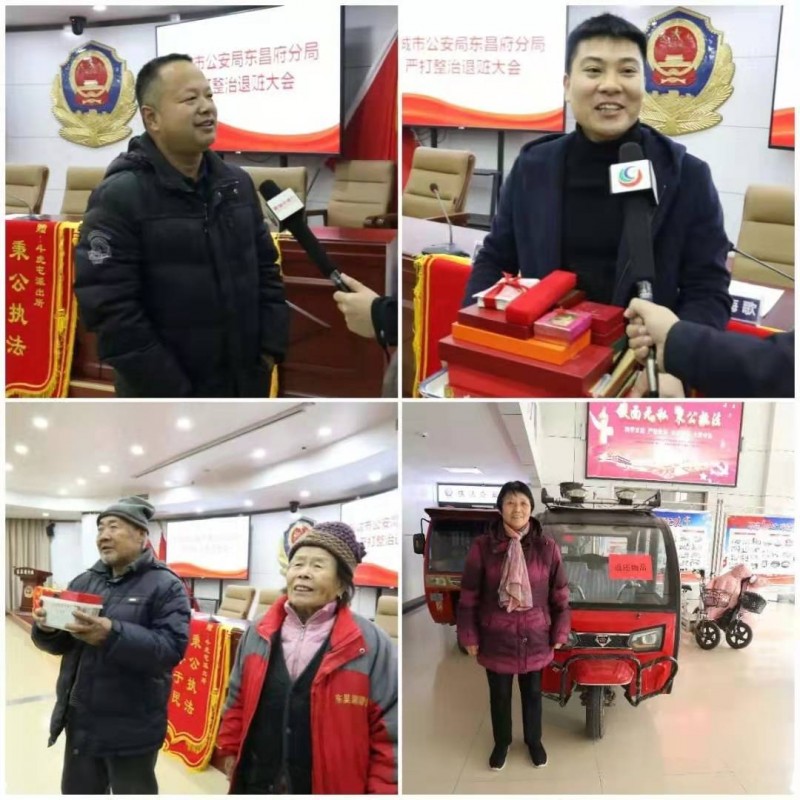 区政府党组成员、分局党委书记、局长于继谔表示,这次严打整治斗争退赃大会,是全区公安机关破案会战专项行动成果的一次集中展示,是震慑违法犯罪、保障群众利益的一项重要举措,将追回的部分赃款赃物现场返还给群众,目的就是向党委政府和广大人民群众展现公安机关严打整治行动成果,表达全区公安机关严厉打击刑事犯罪、切实维护群众安全感、提升群众满意度,确保实现“平安东昌”建设的决心和信心。分局副局长吴振林通报了分局近期打击破案工作情况。