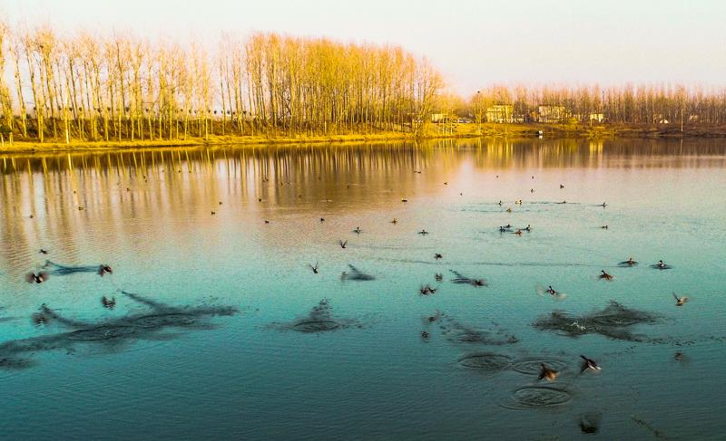 随着生态变好,正阳的水库、河流、坡塘水质变得优良、水草长势茂盛,周边安逸的环境,为水鸟提供了良好的生存环境,黄鸭、赤麻鸭、白鹭等鸟类停留在水库觅食。 一位老乡说:“每年秋冬时节,大批水鸟会来水库觅食。”