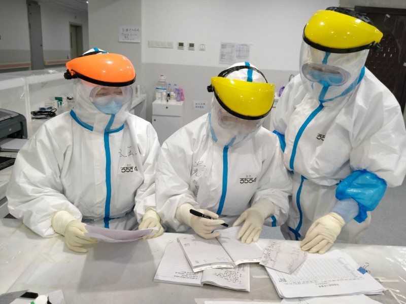隔行如隔山,非常疫情做的是非常的工作,远比平日艰巨。玉兰刚刚准备好一支床,新患者就来了,又是一轮忙碌:测生命体征、入院宣教、输液等等工作……平日里这些简单的护理操作,她们每一个新入职护士都可以熟练操作,在这里却成了难点,扎一个留置针都得小心翼翼找半天血管。因为稍有疏忽大意,若有一个小针孔漏气,就可能要命……