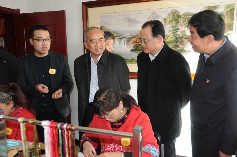 尤其是帮助晋绣坊家庭绣娘原平工作站所在地新原乡太平街村60多名刺绣爱好者,在疫情防控期间居家接受刺绣培训。晋绣坊在第一时间为她们送去价值1万余元的《便绣套件》,并安排高级绣娘加班加点有针对性地录制线上刺绣教学视频课件,让这些异地妇女坐在家里就学到了晋绣坊绣娘老师的教学辅导。原平市委书记李贵增、市委副书记杨晓宏等领导,莅临此站调研,对繁峙晋绣坊的绣品和产业引领,以及无偿培训当地妇女学艺创业,对晋绣坊让妇女坐炕上、做着饭、哄着娃、绣着花、挣着钱、能养家的短平快商业模式给予充分肯定。