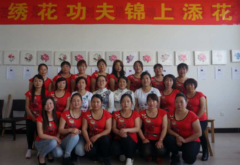 女人当头,当走前头。基地主任薄小燕不仅全程跟班教学,手把手地传授刺绣技艺,而且还肩负着学员们的吃住生活与课余活动。除了课堂教学外,在夜深人静之时她还要在微信群里与学员互动,不厌其烦地回复着一个个问题。正因为她的无私奉献和涓涓爱心,才培养出了王春梅、蒙改梅、侯爱爱、宿俊香等90多名“优秀学员”。