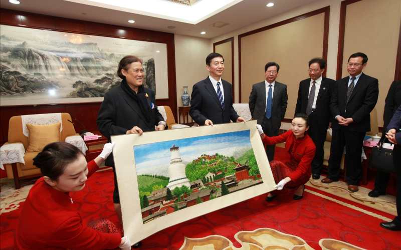晋绣坊正沿着“一带一路”把中华晋绣品牌绣遍中华,推向世界。更为荣幸的是晋绣坊代表作【五台山全景】绣品,分别于2014年9月2日与2017年4月9日两次被选为“国礼”,以山西省委、省政府的名义赠送给来晋访问的柬埔寨西哈莫尼国王和泰国公主诗琳通。