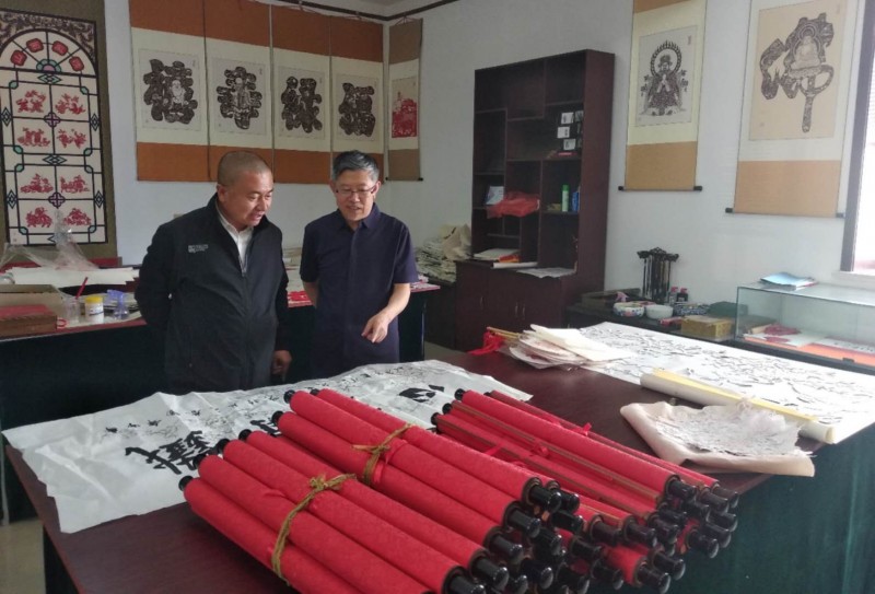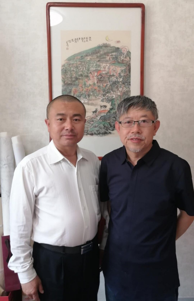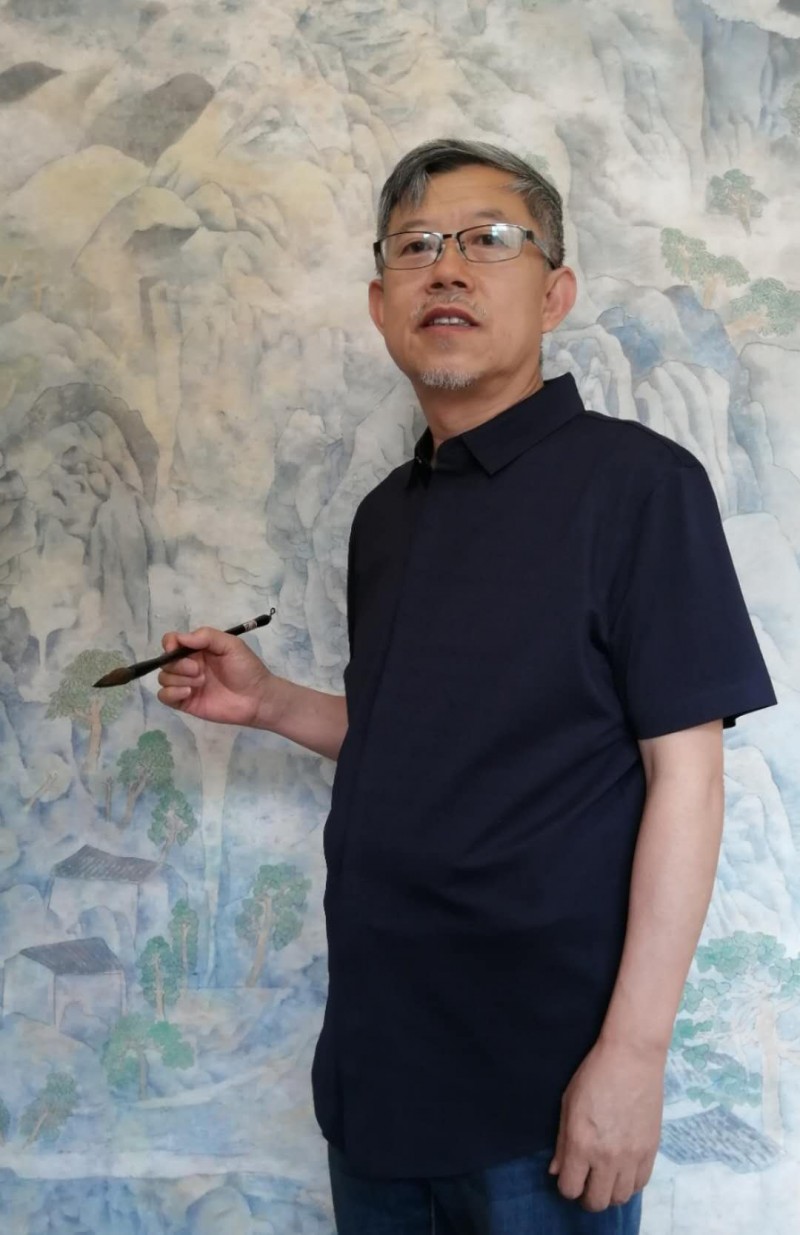 记者对山水画略知一二,颇有兴趣,观宫逢春山水画强烈地感受到,泱泱华夏的江山气韵。画卷里用蓝铜矿和孔雀石,研磨的石青、石绿,颜色尚好。宫逢春常为一幅山水大画去绞尽脑汁,他的书画造诣渐深,他的天赋异禀为青绿山水融入灵魂,画出灵气。出自他手的山水画中峰峦叠秀,江河浩荡,有亭台楼阁、小桥流水,也有乡村野墅、市井繁华。有禅意、有诗情、有画意、有野心,这正是宫逢春梦中的锦绣河山,梦里的美好春天。