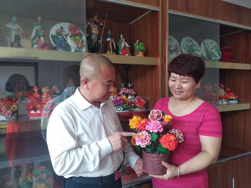 焦未秀从小爱好美术,1994年结婚后,对婆母任改婵的面塑艺术尤其酷爱。她传承了任改婵的面塑工艺,并且在原来的基础上做了创新,作品更加的立体化,品种多样化,深受大家的喜爱。