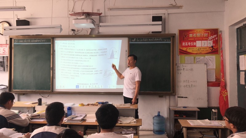 袁老师带289班,是班主任,面临2020届“高考”。同时,他还承担着三个高考班的物理课程。疾风知劲草,板荡识忠诚。他作为年级教研组组长,在正月初八就开始积极投身于学校网课教学中。为了能提高教学质量,教学落到实处。他坚持每天到校上课,因为相比较家里的条件,学校的“空中课堂”条件更好,更能完成教学的各个环节。袁老师接受记者采访说:“物理教学必须是图像分析——思维推导——数学运算的完美结合,如果不能展示图像分析和数学运算过程,那这节课就是一节掐头去尾的失败课,学生是没什么实质收获的”。