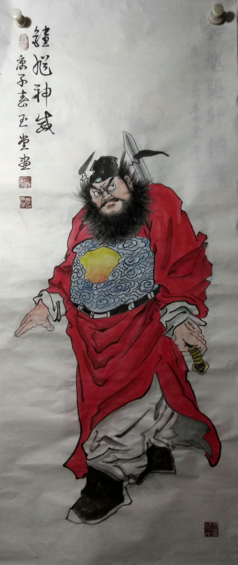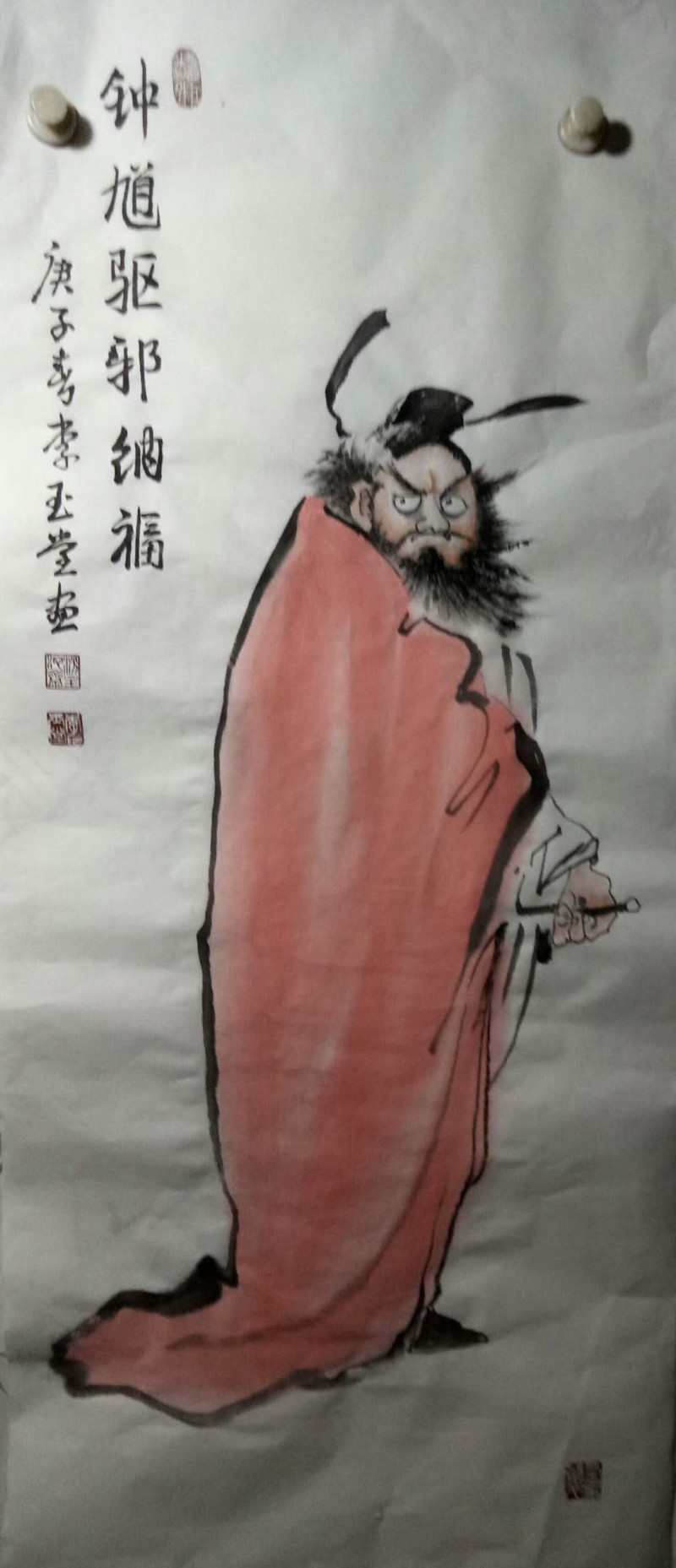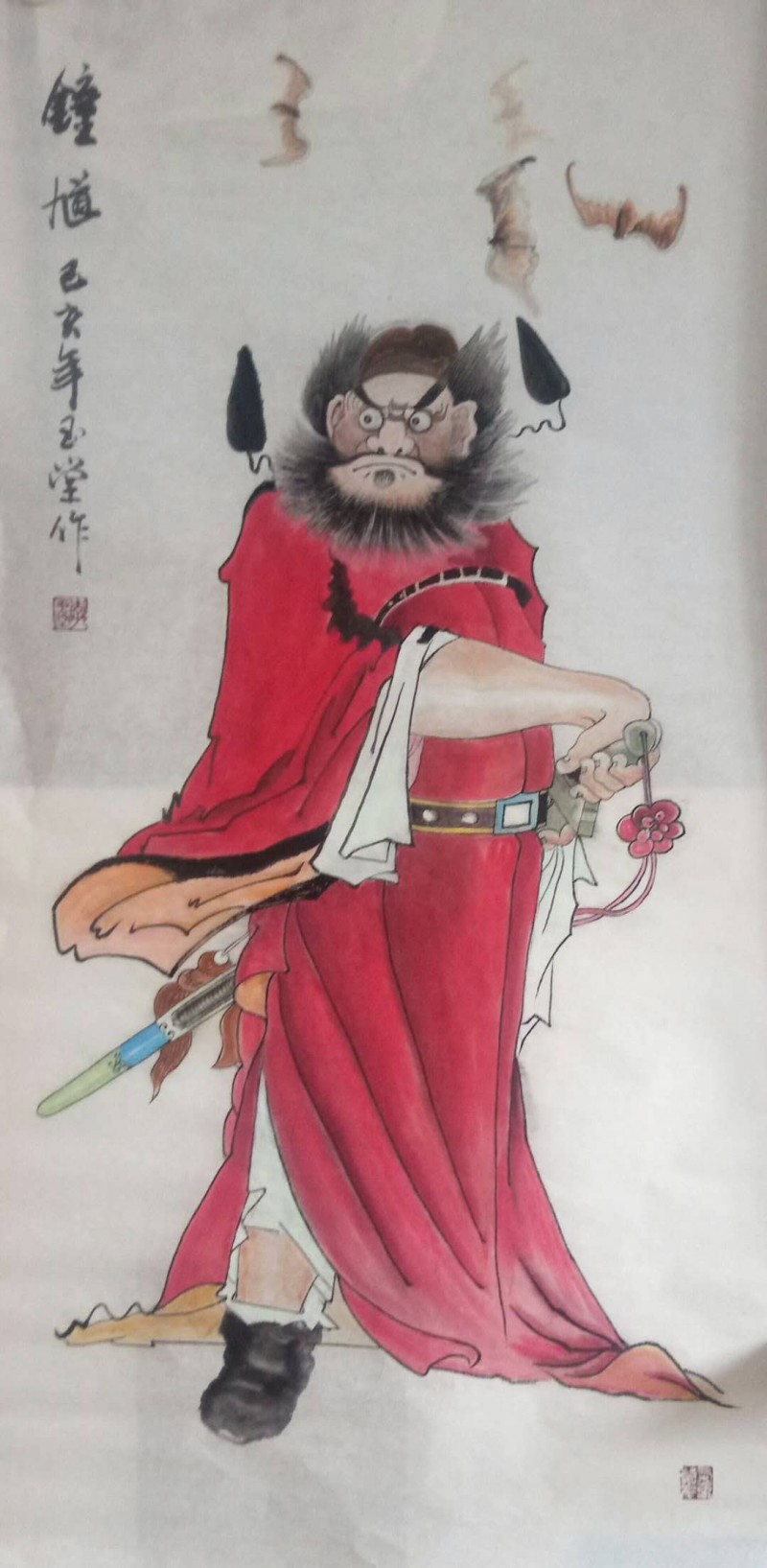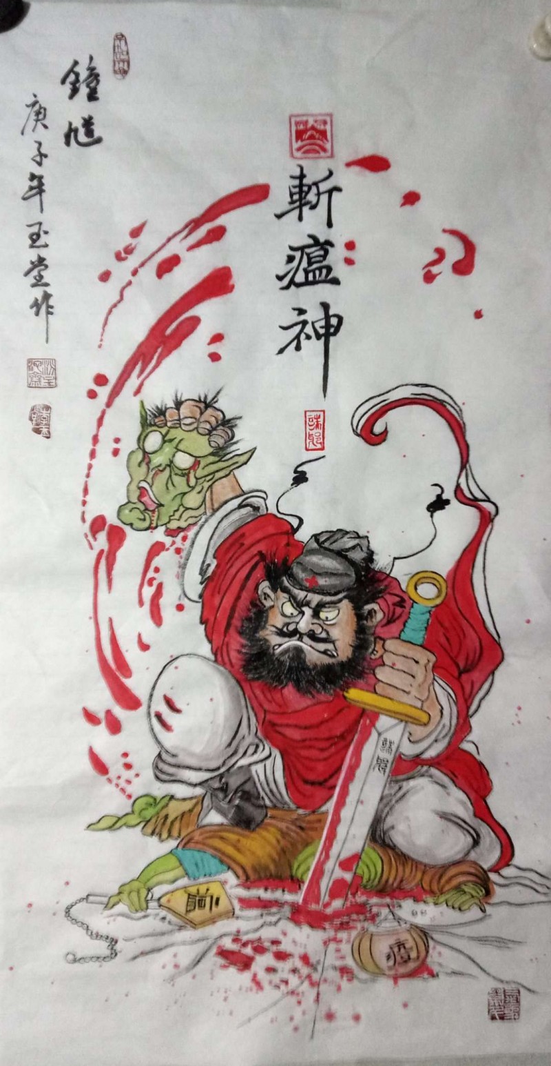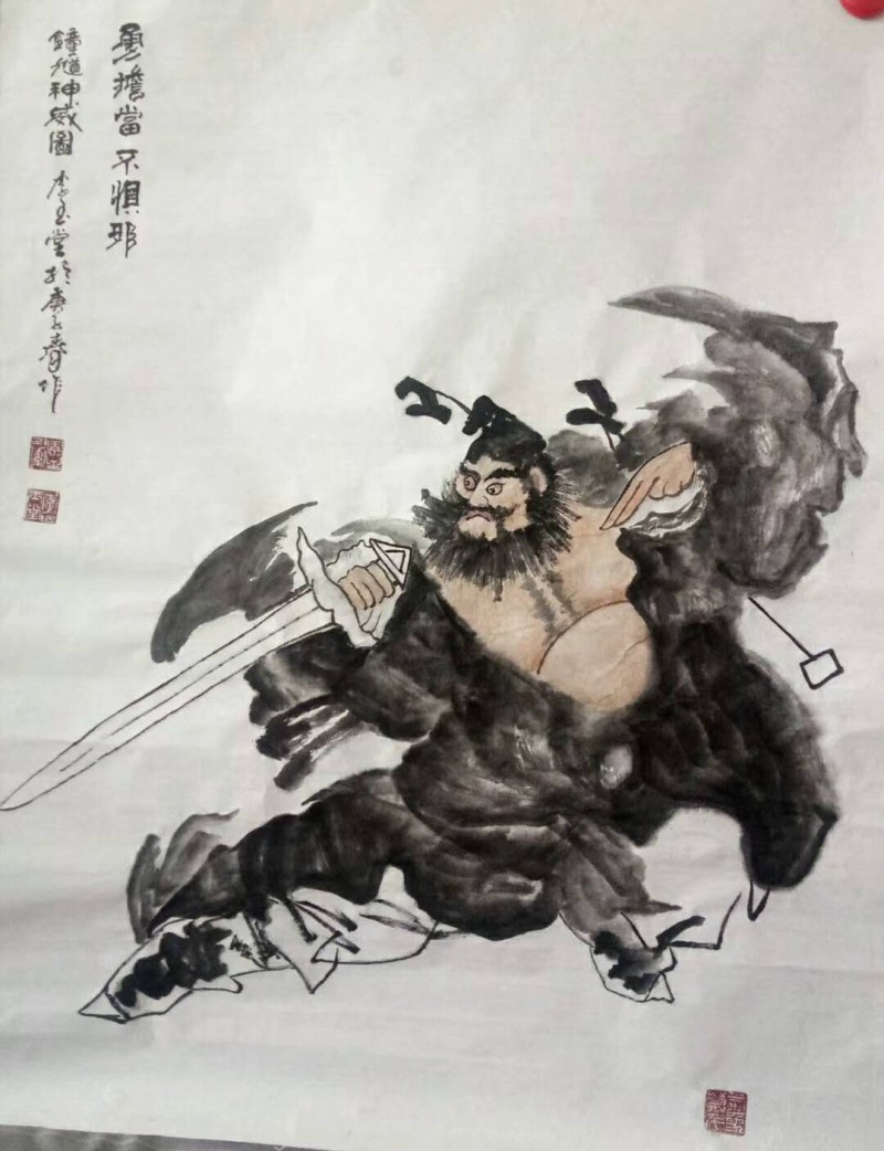 钟馗抓鬼的故事民间家喻户晓,这种植根民间,为大众百姓创作的民间绘画一样登上了大雅之堂,何谓“大堂”?记者的观点是,能留在人心中的,才是最美的。能给众多人享受感悟的,才是所谓登上大堂的。春节疫情后,求李喜画钟馗的,索要钟馗图的人不少,这里既有人们抗疫的朴素心里,也有对李喜作品认可赏识的成分。