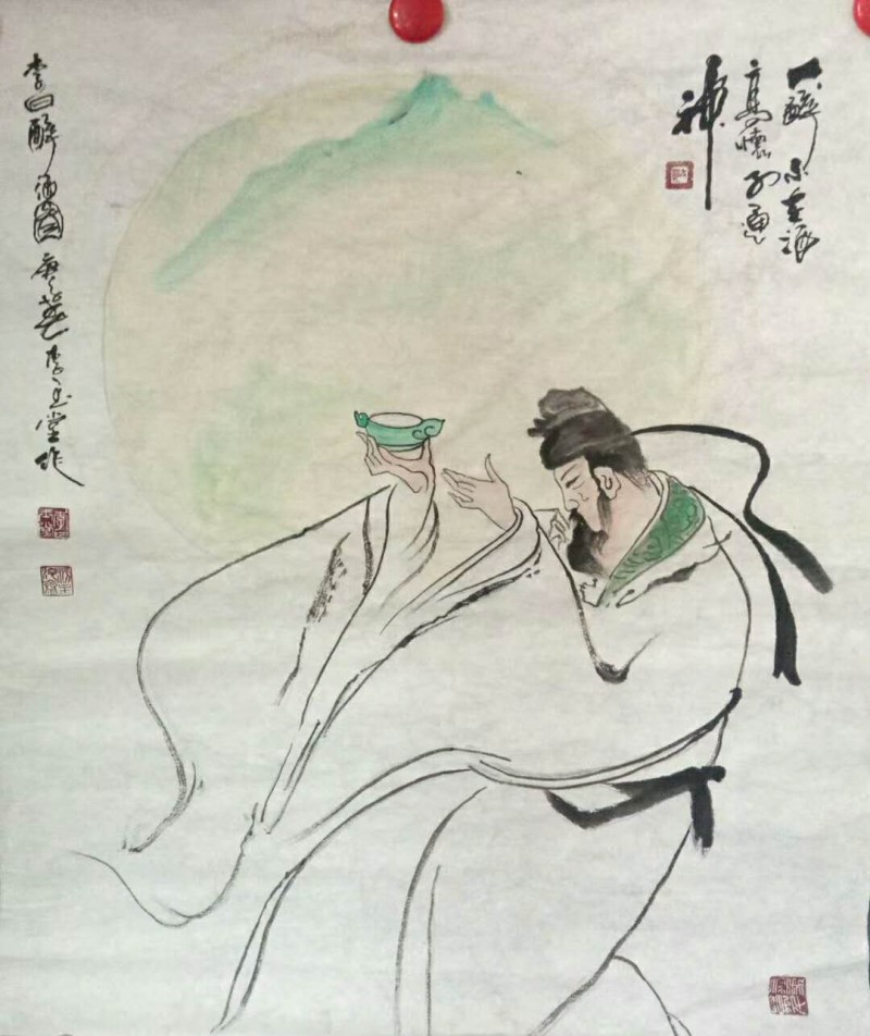 高人?高在何处?高在好人气,高在好手艺,李喜却对别人称他高人有点不适应。因为他觉得自己既没当过小官,也没挣过大钱,就是个普通平凡的手艺人。谈不上“高”言不上“大”。但在真熟悉他的人心里,人们尊敬他,似乎有高大的感觉。一是他和妻子含辛茹苦不但培养大3个儿子1个女儿,而且又拉扯大、培养出1个在上海工作、十分优秀的孙子,你能说不高不大吗?二是李喜大半生与世无争,少言寡语,朋友有求必应,爱喝酒,爱画画。尤其是老年有闲,在绘画上悟出真趣,好作品屡见不鲜,称其高手也不过分吧?
