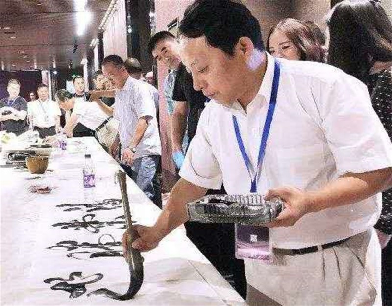 世界之大,无奇不有。赵宏的悬空悬肘书法令人拍案叫绝。笔法着墨是书画的重要环节。墨色的干湿浓淡和笔法的轻重缓急最见书画者水平高低。多数书者,伏案而书。赵宏凭借深厚的功底悬空悬肘而书,且能写出一笔好字,实则不易,如何做到的呢?赵宏说,功夫须在多练用笔。握笔不能太紧,要虚灵。他引用王右军的话说,平腕竖锋,虚左实右,意在笔先,字居心后。