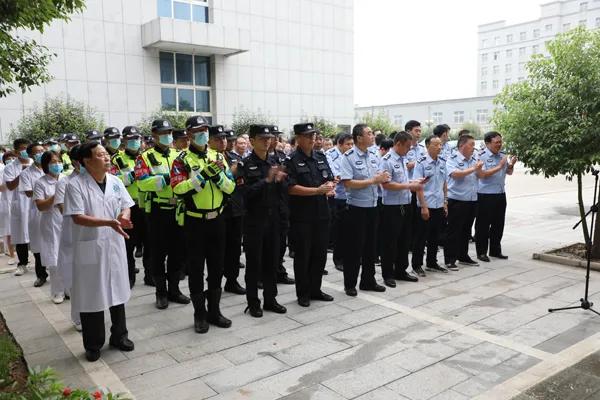 随后,执法办案体检中心负责人董少杰作发言,代表县医院法医门诊全体医务人员郑重承诺,不辜负领导殷切期望,不负重托,再接再厉,遵纪守法,以更优质的服务态度和服务质量,坚决完成上级交给的光荣任务,搞好健康检查和医疗保障工作。