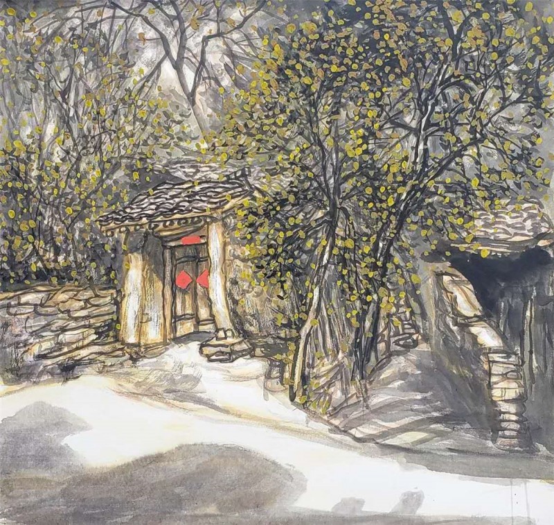 皇城根下,藏龙卧虎,人才济济。北京的十余年中,东光画界大饱眼福,受益广启迪多,自己也画出了不少自己中意的作品,参加大大小小的展览数十次,也得了不少奖,同时得到了同行和评论家的一些溢美之词,但他自己心里总是怯生生的。说到创作,他说自己钟情于自己最熟悉的景致,比如生他养他的晋北农家小院。生活是艺术的厚土,于是家乡的山山水水就经常出现在他的作品里。他以手中画笔描摹时代变迁、描绘忻州巨变、展示五台成就,抒发情系故土,肩负使命的家国情怀。他说即使离家再远再久,这里还是心灵深处最温馨的地方。有时候他在画中刻意把农舍门户画上对联,除了画面色彩处理的需要,更重要的是他对勤劳善良的祝福。北京的胡同他也很爱画,毕竟他在其中转悠了十多年,大山小巷都有感情,况且这种宁静而珍贵的灰色调在人们的视野中消失的太快。