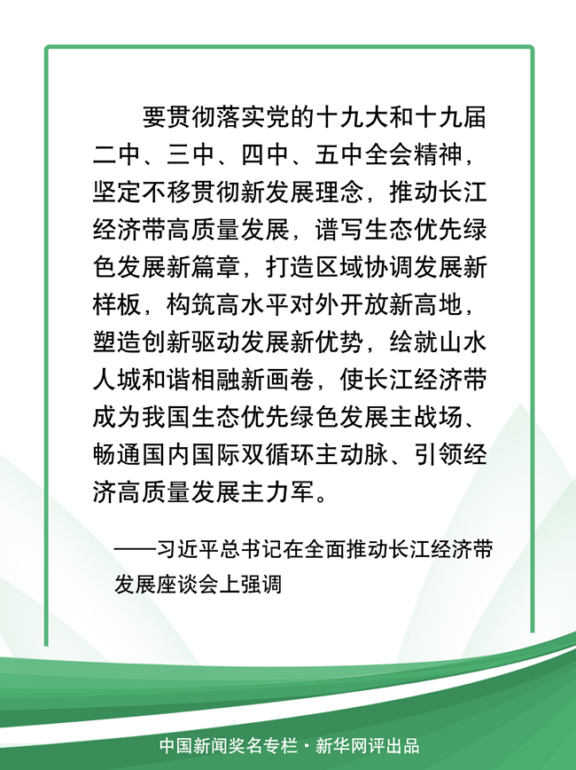 “你从雪山走来,春潮是你的风采;你向东海奔去,惊涛是你的气概……”我们要全面把握新发展阶段的新任务新要求,把保护生态环境摆在更加突出的位置,以永不懈怠的精神状态和一往无前的奋斗姿态推动高质量发展,努力把长江经济带建设成为生态更优美、交通更顺畅、经济更协调、市场更统一、机制更科学的“黄金经济带”,谱写更雄浑壮美的“长江之歌”。(文字:毛同辉 海报:张倩)