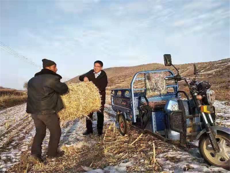 在农村农民历来有焚烧农作物秸秆的习惯,极易造成环境污染,甚至引发火灾。薛文斌就此向公司申请专项扶贫补助资金,帮助利民寨村购买1台秸秆打捆机。为办成这件事,他多次协调县财政局、扶贫办、乡政府和农业发展银行加快项目落地,满足农户使用需求。这个项目不仅减少了焚烧秸秆对环境造成的环境污染,避免了火灾的发生,还提高了秸秆回收利用率,能够在一定程度上产生经济效益,帮助贫困户增收。虽说小事一桩,但若办成谈何容易?其间尽管经历了许多困难,付出了许多辛苦,但比起取得的成效,薛文斌认为一切都是值得的。这一年秋收后,共帮助贫困户回收秸秆2000斤,大多数用于饲喂牲畜和冬季食物储备。其中贫困户方有银利用秸秆饲养山羊,年出售山羊40只,年增加收入约60000元。在入户走访过程中,方有银信心满满地对记者说:“现在我的羊吃得好、长得快,收入高,明年我还要扩大养殖规模,多赚个钱。这个好事情,小薛有功劳”。