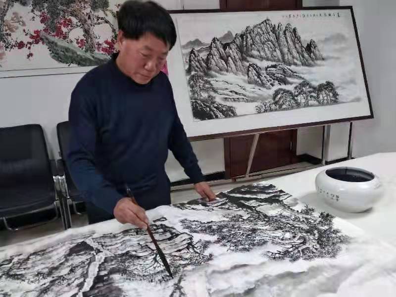 画画是张少华的人生乐趣。他画画达到了忘我的境界,这是宁武业内公认的事实。有时作一幅画,一站就是几个小时。画幅大画,有时的一个月时间。量变质变,画的越多,提高越快,尤以山水画气势恢弘,景致引人,意境深远,看山似山,看山不似山,看山还是山,有“春山澹冶而如笑、一切景语皆情语。”之妙。