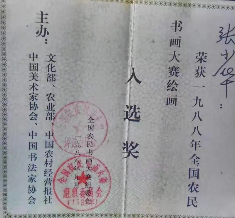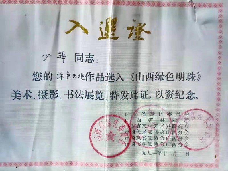 记者在宁武县总工会的大画室里,专访张少华。其时傍晚,但他还在埋头作画,墙上挂着几幅山水画。记者了解到,少华的国画《饮牛》1988年获全国农民书画大赛奖;国画《绿色天地》1991年入选山西省美术书法作品展;国画《春天的故事》2004年参加“纪念邓小平同志诞辰100周年”全国书画大赛获一等奖,国画《深山早春》、《山村秋韵》入选山西省美术作品展获佳作奖;《大岳之春》2008年入选第五届当代中国山水画展获创新奖;《奇峰竞秀》2009年入选第六届当代中国山水画展获佳作奖。小县城的画家取得这些荣誉实属不易。在宁武画界少华名声在外。