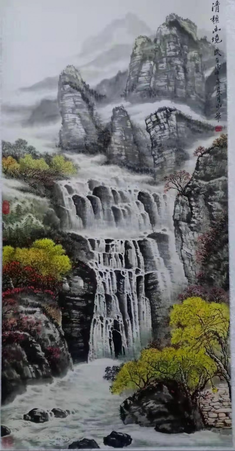 艺术之高?其实还是高在主观对客观世界脱俗的感悟。艺术源于生活,又高于生活,这已是不容怀疑的真理。少华有功底,有天资,有追求,画作自然是让人称妙。黄宾虹所言:“吾人唯有看山入骨髓,才能写山之真,心手相印,益臻化境。”少华深刻领会,勤练多用,景在眼中,印在画中,你不得不说,站在画前,置身景中。