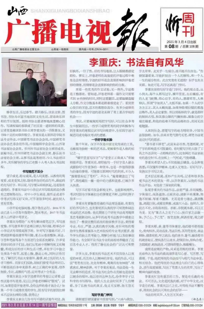艺术拉近距离,美妙产生共鸣,记者和很多热爱书法艺术的朋友一样,认识李重庆,从他的书法作品开始。对他有了深刻的印象。