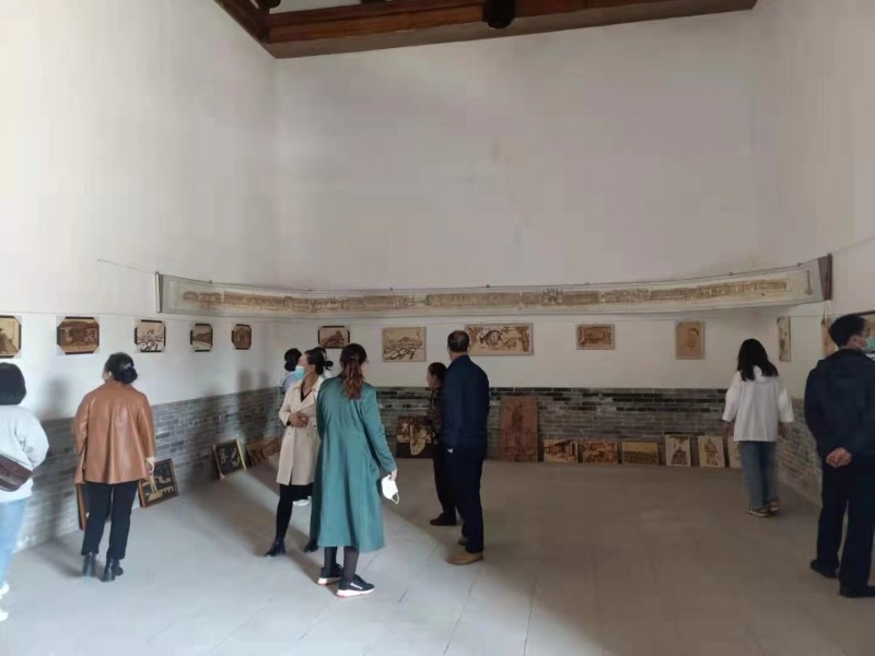 故土情深,土生土长在岢岚县的侯龙飞,对家乡的一草一木皆有感情。家乡的山水是他笔下描绘最多的题材。其烙画力作《宋家沟》铺陈于长卷宣纸上,画长9.28米,加上装裱部位整幅画全长超过10米,烙画稀罕,绘画精美,成了今年五一假期岢岚城墙上又一处别样的风景,吸引游人驻足观看。《宋家沟》《王家岔》等烙画作品,既是他对家乡岢岚的礼赞,也是其创作上的一次飞跃。