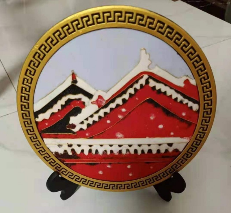 《福》《红墙残雪》是侯龙飞创作的景泰蓝画。其画面构图富有禅意和诗意,画艺画技颇有讲究,识者无不赞叹。这是侯龙飞专研攻克景泰蓝画的又一份绘画硕果。