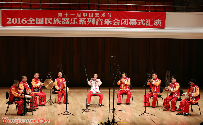 主奏乐器是《大骂渔郎》套为唢呐(高、低各1)单奏;《青天歌》套、《扮妆台》套、《推辘轴》套、《十二层楼》套、《箴言》套、《鹅郎》套、《劝金杯》套均为管子主奏,高音唢呐笙以及打击乐辅奏。