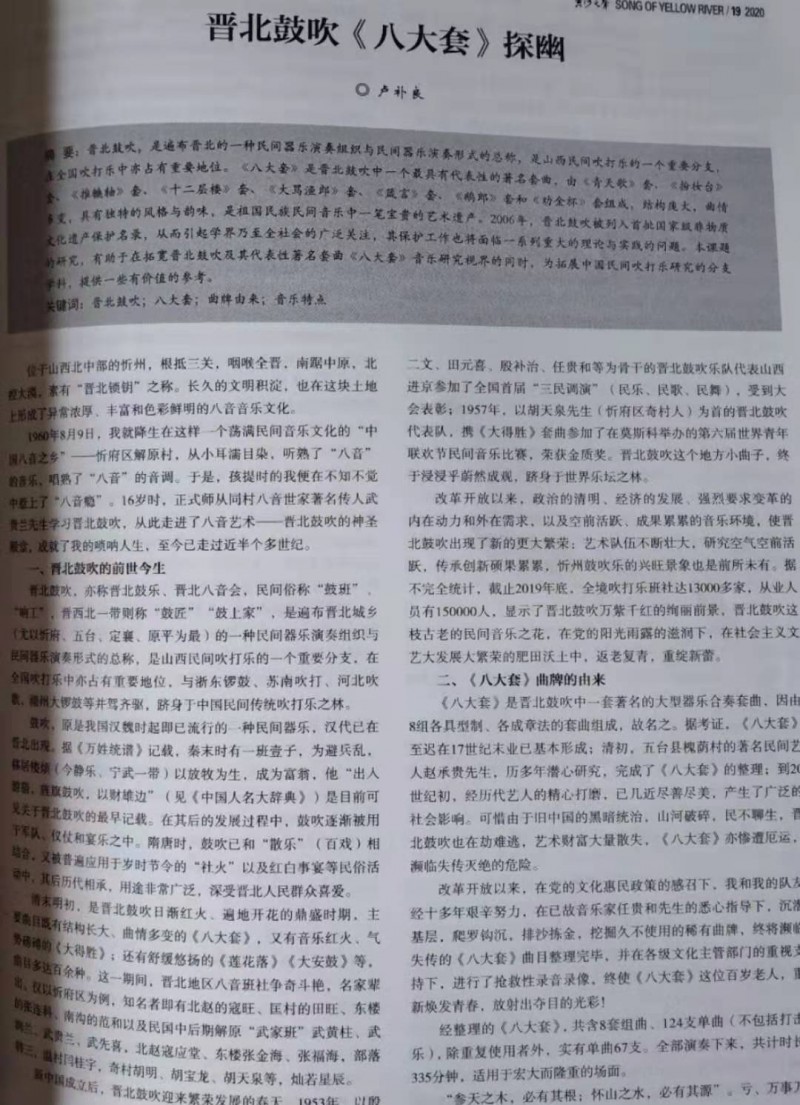 晋北鼓吹品牌《八大套》这枝古老的民间艺术之乐,以其特别深沉的声音,更加沁人心脾的交响,奏响在全国乃至世界的舞台上……