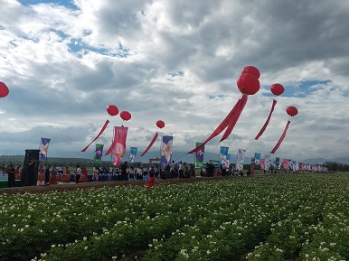 一颗小小的土豆五寨县谋篇布局做起了大大的文章,他们别出心裁,把马铃薯产业与生态旅游、特色餐饮等县域旅游要素深度融合,精心打造开发出全国以土豆花为主题的旅游项目。以花为媒、以节会友,迎八方宾客、聚五寨美誉。唱响“南有婺源油菜花,北有五寨土豆花”的主旋律。