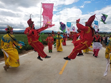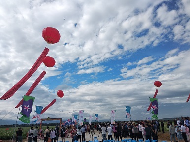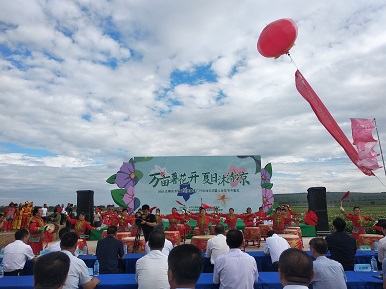 富民产业人心所向,如潮花海歌颂党恩。启动仪式上,花海古筝、花海红歌、八大角秧歌、文旅宣传片《诗情五寨》竞相为此助兴……