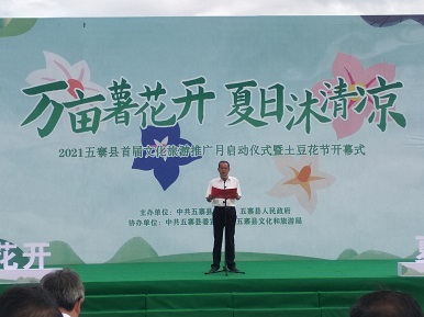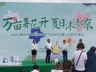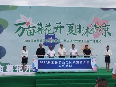 天人合一,众志成城。万亩薯花开,万众同心干。 承载着十余万五寨人民的厚望,中共五寨县县委书记张宇光致辞,与其他县领导高新军、苏国平、党勇、赵波共同推动启动装置,为五寨县首届文化旅游推广月暨土豆花节开启序幕。文化旅游推广月期间,该县将依托“互联网+文化旅游”构建立体化旅游内容产品体系,以系列主题活动为载体,联动五寨特产、文化、景点等产品,通过社交化、互动化、文艺化、内容化的形式,推出五寨特色产品,传播五寨文化,讲好五寨故事,快速形成五寨文旅的标签印象。