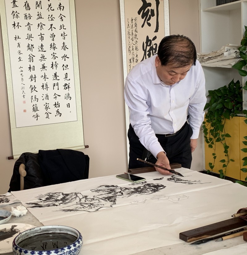 鸟飞兔走,石火光阴。转眼数十载流逝而去,2017年张吉玉离开繁重的工作岗位,从此有了大把的闲暇重拾曾经的爱好。当他参观过一届高水准的中国画展,在其艺术魅力震撼后,吉玉决定抛开一向热衷的水粉画,朝着新的方向与目标发起冲击的决心。至此他就主动拜访并搭伙画友,在原平境内四处听讲座、访名师、看画展,并一次性购置了足以盛大开张的纸墨笔砚等文房四宝,煞有介事地开始学习中国画。其时的吉玉,完全以一种虔诚的姿态、一副崇拜的目光和一腔虚心的热情对待有缘结识的每一位长者、师者,从而也赢得了大家的友好接纳及指点,让自己收获良多,受益匪浅。