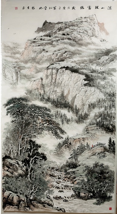 谈到绘画,张吉玉体会最深的是“艺无止境”这句话。他摸索其意,探其真谛。在生活中,他观察人物、事物、景物,变得心思更细腻、举止更儒雅、性情更率真。过去的他,生来性急,无论干什么事情都是匆匆忙忙,风风火火;现如今,受益于国画的修炼与熏陶,曾经的影子几乎已经消失殆尽。相应地,他的画风画韵也为之一新。张吉玉的中国画虽小有所成,但他懂得,厚积薄发,勤能致远。他总是用笔下的水墨丹青为祖国的大好河山献上一幅幅饱含爱恋与敬意的锦绣画卷……眼前有画,心中是画,手里作画,人生岂不是画?