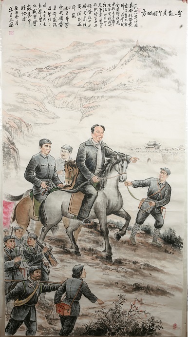 这不,张吉玉的一幅《岢岚是个好地方》受到画界好评。他告诉笔者,此画取材于1948年春毛泽东率中央机关东渡黄河,奔赴新的革命圣地西柏坡途中,路居岢岚,目睹这块独具特色的形胜之地,欣然感叹:“岢岚是个好地方!”