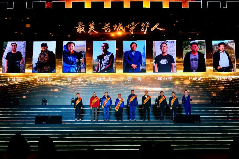 《望月怀远》《昭君出塞》《长城》《华夏颂》开幕式上这几个集中展现塞北风情和中秋团圆的家国情怀的文艺节目以“音、舞、诗、画”形式上演,引人又胜,分外精彩。激昂号角,四起狼烟,金甲战士,舞台挥剑,台上熊熊燃烧的烽火象征着希望之火、奋进之火、复兴之火、和谐之火的盛世燃烧,旅游节盛大开幕。文明传承•爱我长城旅游文化嘉年华再度开启。爱我中华,护我长城,许卫东、尹成武、郝中华、曹俊、周礼忠、曹军、吴永春、王茂盛八位“最美长城守护人”以真情实感的动人故事把现场氛围推向高潮。