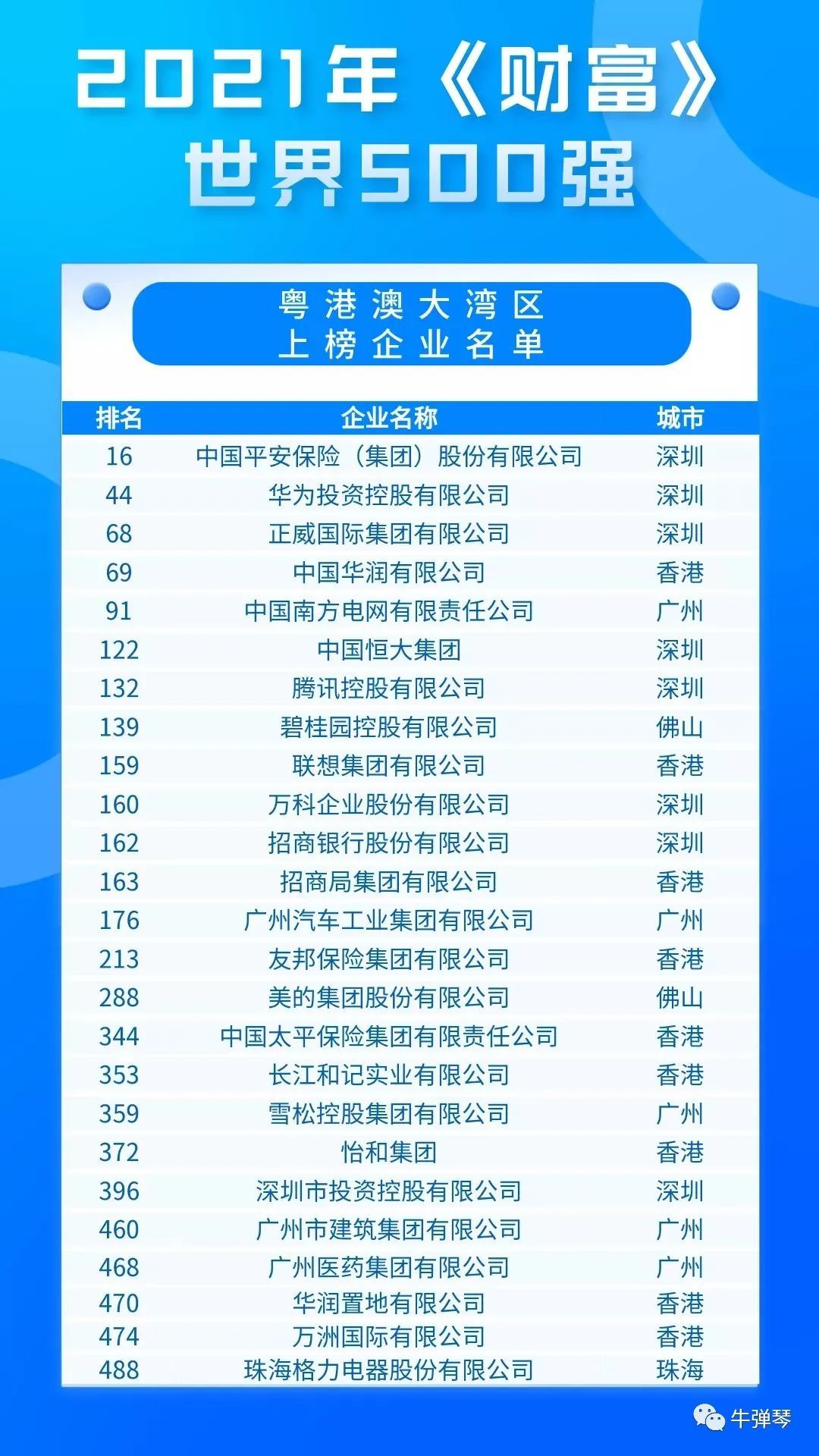 要知道,2011年,大湾区还只有7家企业上榜,10年后则已25家,是10年前的3.6倍,占全国上榜企业的比例18.5%。