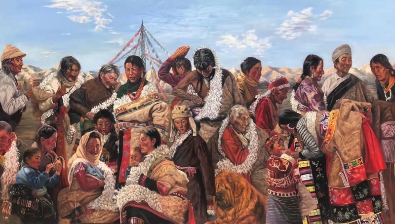 大多数人为了生活都在忙碌。许多人却不知道为何而活。段兵在西藏采风,升华了这一认识。藏胞们的那种信仰,成了他创作此画题材的重要原因。