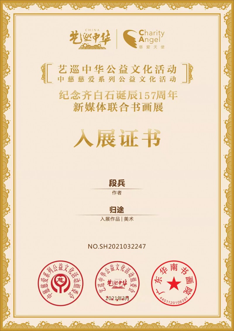 段兵在2018年在预参广州艺术博览会时被评为中国优秀青年艺术家。