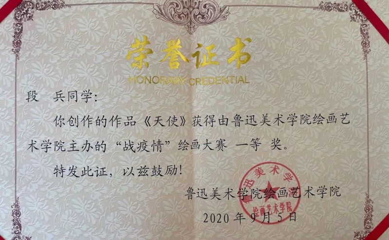 绘画作品《天使》获得“大华杯全国美术作品大奖赛”一等奖。