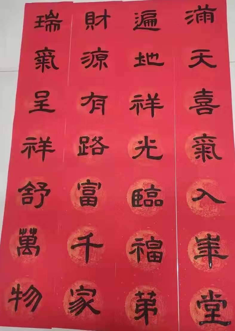 “无联不成春,有联春更浓”。山西省忻州市神池县书法家协会2022年元旦组织书法爱好者为当地群众新春献艺,书法成了暖冬一景。其中青年书法家秦军挥毫泼墨书写春联分外引人注目,他将楷书的端庄平正和浓郁的寅虎年春意,一幅幅对联就是一件件精美的书法作品,跃然呈现红联之上,不少观者叫好。