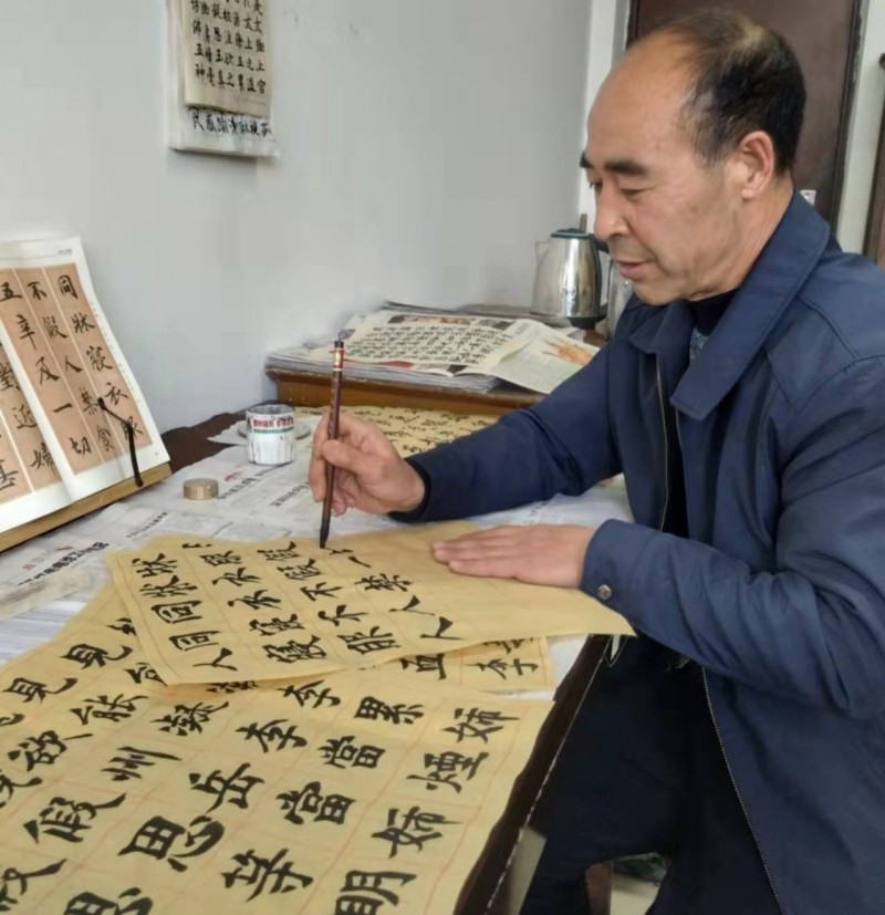 走访秦军,畅谈他与书法的那些事。秦军1968年出生于神池县九姑村,在那个缺吃少穿的年代,学习书法的条件并不乐观。启蒙从小学三年级开始,语文老师要求他和同学们每天写仿一张,第二天由老师红笔批改,同学们每天最大的期待就是看谁的字被老师画的圆圈多,给单调枯躁的学习增加了乐趣。秦军真正喜欢上写毛笔字是因为本村一位善书法的舅爷爷。秦军记得,每到春节来临之际,家家户户都来找他写春联。这位老学究写的楷书一点一画犹如馆阁体,远近闻名。近朱者赤,近墨者黑。秦军参加工作后,又幸遇冯耀,杨建华两位书法师傅,他们那些沉劲入骨,笔走游龙的书法以及高尚的人品,吸引秦军走进书法的殿堂,在他们的悉心指导下,工作之余,笔耕不缀,字字用心,寒来暑往,临摹柳体,二十余年,与人无争,与世无争,把宠辱置之度外,在字中悟人生,在字内怡情养性,小有成绩。秦军的书法作品入选2003年首届“羲之奖”全国书法篆刻大赛作品集;2021年,作品入山西省忻州市老年书画家协会庆祝建党100周年《翰墨颂党永向前》书画展,以及神池县历年来书画展。成为山西老年书画研究会会员,神池县书法家协会会员,神池县作家协会会员。