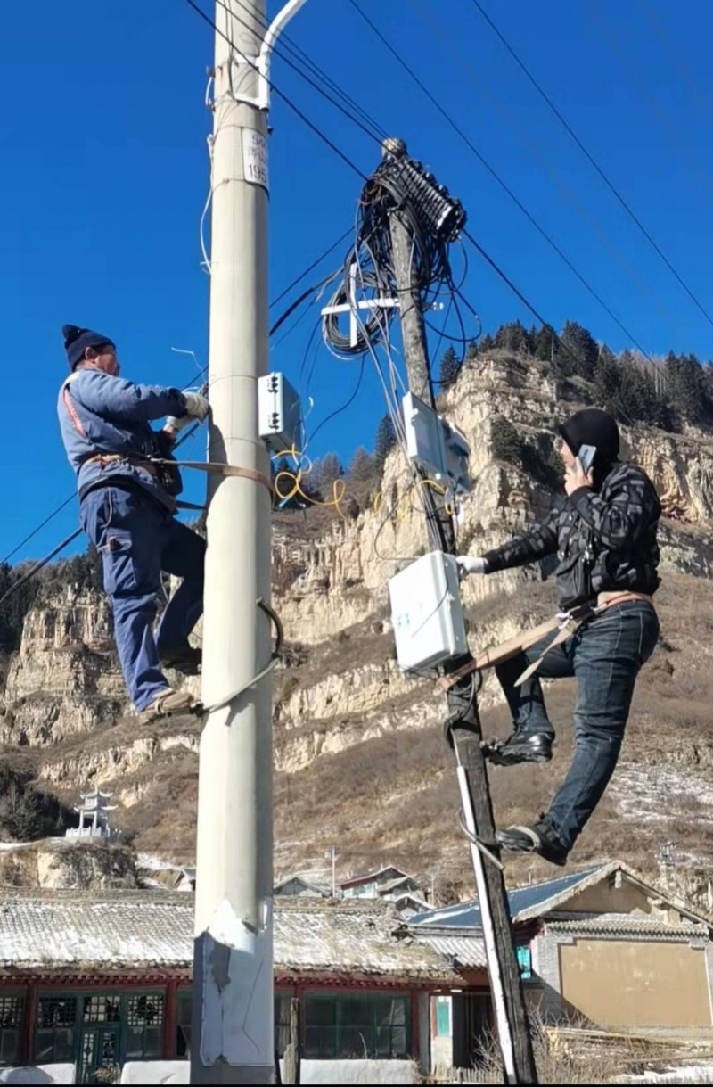为了高标准圆满的按期完成建设,宁武联通公司一班人紧密团结,分工协作,废寝忘食,扎实推进。全公司所有参加项目的同志们顶风雪、战严寒,起早摸黑,全身心投入这场限时定量的攻坚战。他们每天早7点准时集合从宁武城出发,中午现场方便面匆匆下肚,趁中午阳光暖和良时,加班加点抢时推进,晚上8点多才能返回吃口热饭。涔山乡的一些行政村一整天没有日照,两面环山,强劲山风吹在脸上如同刀割,戴上手套不方便干活,脱了又冻得手疼。涔山乡因海拔高,此季极端天气常见,大雪纷飞时,积雪没过脚踝,工具车打滑不能前行……面对恶劣天气,公司安装队全体成员没有一句怨言,克服重重困难,尽最大努力加紧施工。星光不问赶路人,时光不负有心人。30天内新增200M宽带并搭载沃家神眼业务100余户。终于在年前完成了涔山乡9个行政村的智慧乡村建设。