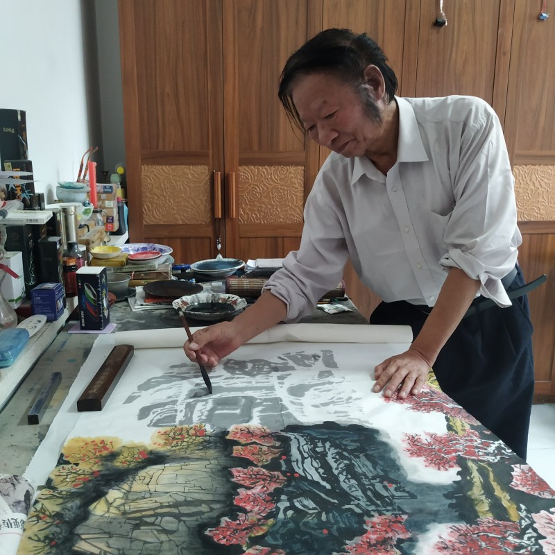 原平文化底蕴厚实,历朝历代的名人在此地广留佳话,有趣故事皆是自幼喜爱书画的兰岩山励志的很好参照。兰岩山被原平大好的人文环境所滋养快成长,他拜中国著名书画家吴东魁为师,苦学精炼,偶有所悟,自成风格,成为中国书画协会会员、中国三峡画院理事、原平市老年书画研究会会长。曾是原平市人大常委会秘书长的兰岩山退休后,2007年接班老年书画研究会会长至今,其间他带领原平市老年书画研究会,始终遵循老有所乐、老有所学、老有所为的办会理念,扎扎实实,无私奉献。该会组织全市诗书画印,至今已发展本市老年会员200人,建立分会16个,450人,全市共650人,其中50个党员。副会长20人,各授其长,他们分期分批在原平市农校学习,学员文化程度不一,年龄小至13岁,大至90岁。周一书法,周二党课,周三绘画,周四篆刻,周五诗词。因会长兰岩山组织得力,屡受表彰。这些年,兰岩山个人全国各级投稿参展6000多幅,文化下乡3000多幅,无偿捐赠16000幅,获中央、省、地市奖14次,组织奖6次,获得全省特殊贡献奖。兰岩山全年无偿授课240节,还给困难学员买文房四宝,自费印制表格、文件、会员证书。故土情深,因为这份难舍难分的故乡不了情,他享有了一抹老有所为绚丽夺目的夕阳红,丰富了原平市50万人民的精神文化生活,提高了民众的审美情趣和水平。