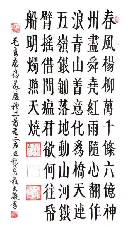 程大凝四岁(三周)随爷爷和父亲学习诗书画,至今专研书法70余年。7岁入学就拜师学书,日临百余字。就读忻州师范和山西大学艺术系,受益于全国和全省的著名书法家姚奠中、段体礼、李孝慈老师的课堂教学与课外辅导,退休后中书协展览中心又培训三次。一生临贴三百余本,少则两三次,多则百余次,现能熟练书写十八种书体,仿宋、大黑、粗圆体已获国家专利,书信,起文多用毛笔。他热爱祖国,不忘初心,以笔咏志,留下佳话。