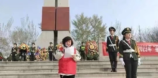 热心公益,忠党为民,坚持不懈,大爱传情。清明前夕,山西省忻州红色志愿服务队携手忻府区蓝盾应急救援队和忻州市第二实验小学部分师生,来到忻州市红色教育基地烈士陵园一同开展2023年国防教育暨‘缅怀革命先烈’,传承红色基因"清明祭扫活动。忻州红色志愿服务队负责人冯丽代表全体志愿者发言。