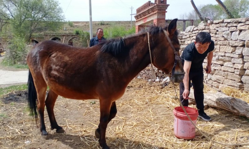 俗话说,牲口怕生人,有时见了生人,兽性大发,鬃毛倒立,又咬又踢。但眼前这匹健壮庞大的骡子在身材瘦小的高福虎跟前却很温顺,乖乖的喝水。原来是这些年驻村的高福虎常在冯建平家拉家常,常稍带干点农活,举手之劳还揽起了用水桶饮牲畜的营生,人与动物日久共处,才有了这个和诣的生活镜头。